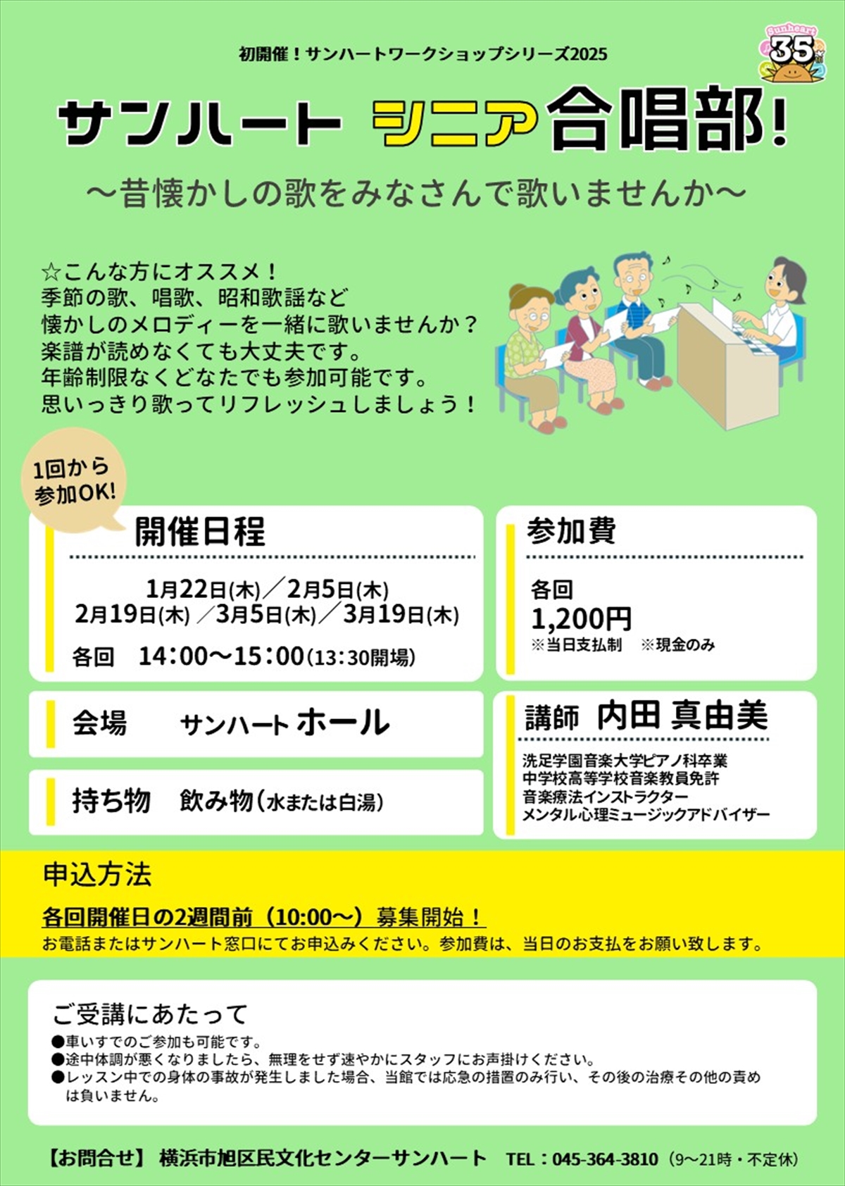 1/22・2/5・19・3/5・19(木)◆座ってできるエクササイズ&シニア合唱部