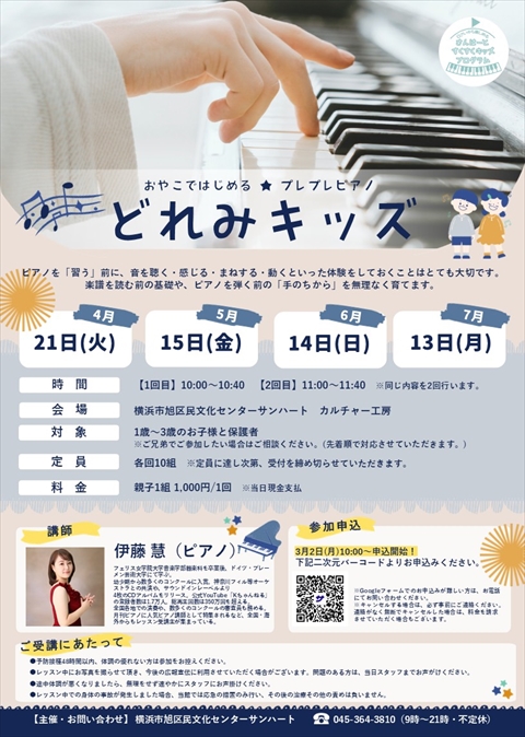 4/21・5/15・6/14・7/13◆おやこではじめる「どれみキッズ」@サンハート